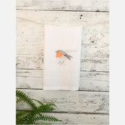 Merry Christmas English robin French linen tea towel