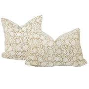 Signature Floral Cotton Pillow Cover in Olive Green
